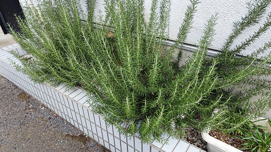 数年前にご近所からいただいた1本の枝を挿し木したローズマリーが、今ではすっかり立派に育ちました。