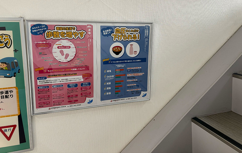 地域貢献活動とは少し趣旨が異なりますが、社員の健康意識向上を目的として、協会けんぽの資料を活用した「健康掲示板」を設置しています。