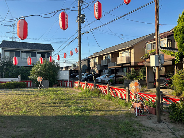 真夏の暑い中、少しでも涼しく過ごしながらお祭りを楽しんでいただけていれば嬉しいです。 委員会リーダーSさん、朝からの配置・電源確保の打ち合わせお疲れさまでした。