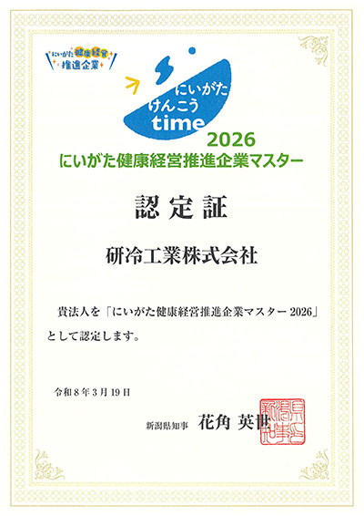 このたび当社は、新潟県より「にいがた健康経営推進企業マスター2026」に認定されました。